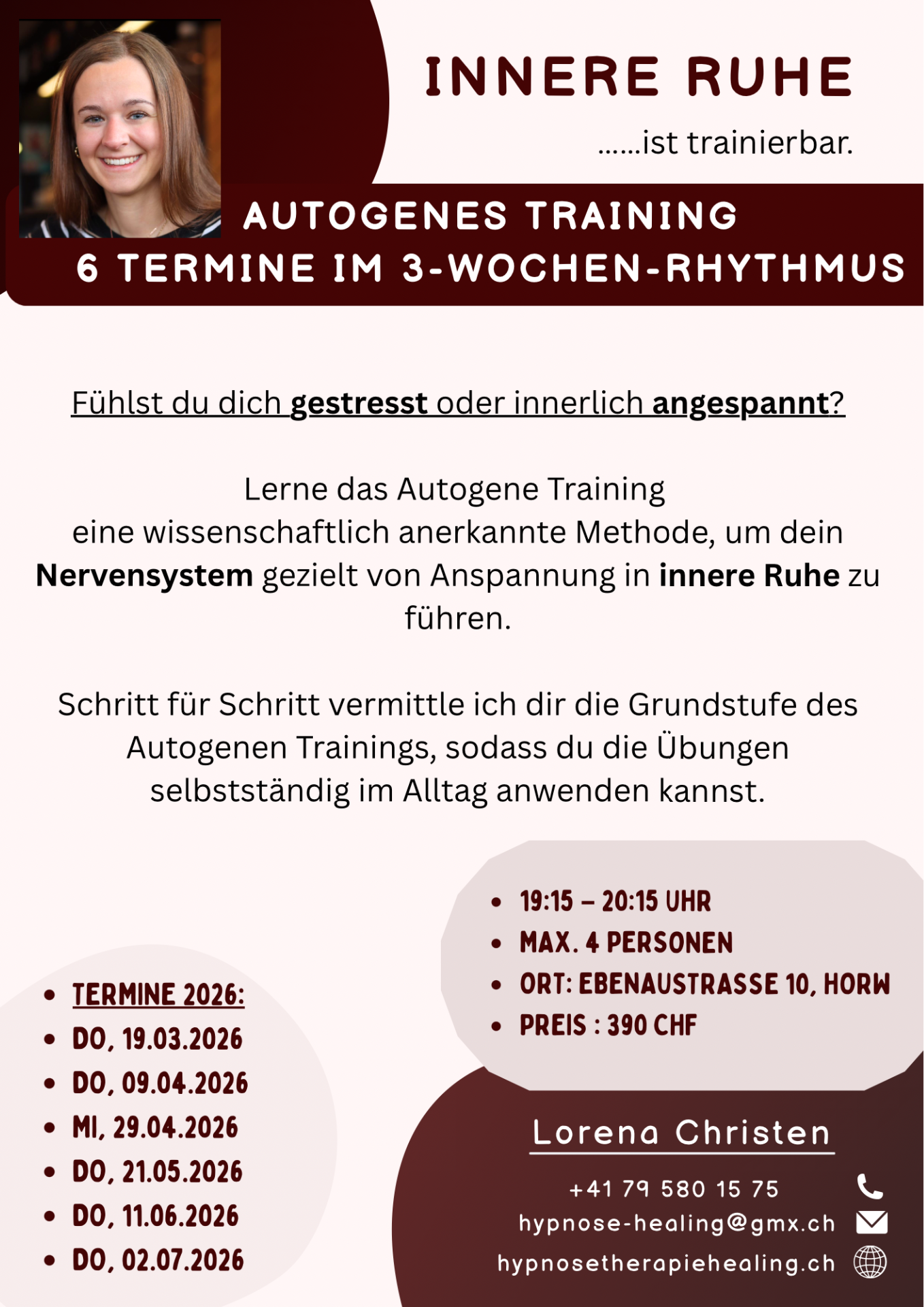 In einer ruhigen 1:1-Begleitung mit Autogenem Training lernst du, dein Nervensystem zu regulieren und wieder bei dir anzukommen.